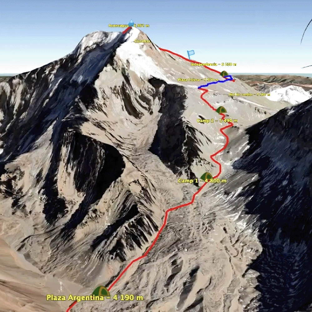 Ascension de l'Aconcagua à 6962 mètres par le glacier des Polonais en Argentine