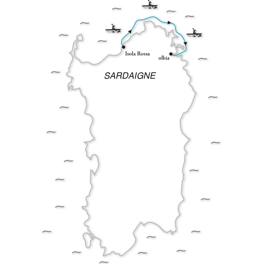 Navigation en kayak de mer le long de la côte Sarde
